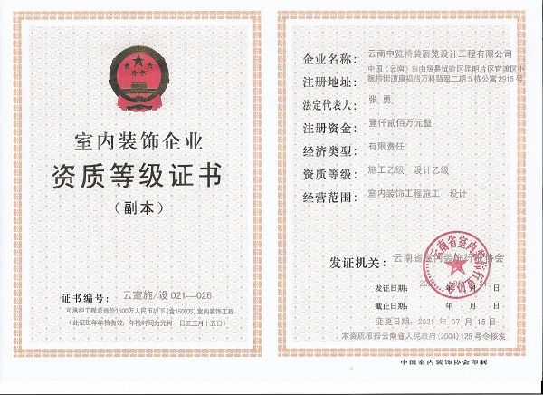 標(biāo)簽:室內(nèi)裝飾企業(yè)資質(zhì)證書