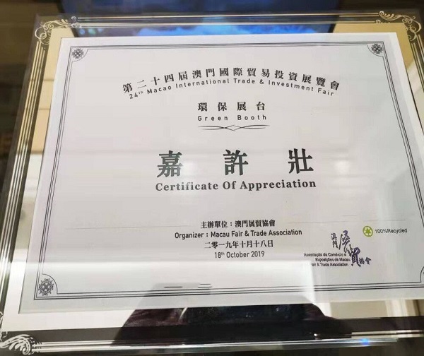 第二十四屆澳門(mén)國(guó)際貿(mào)易投資展覽會(huì)獲獎(jiǎng)