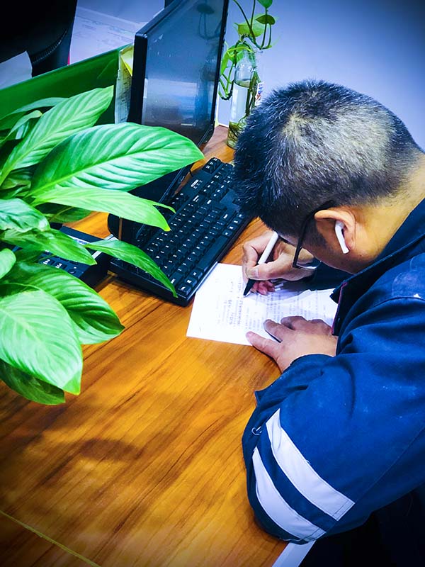 圖為綜合考試現(xiàn)場工程技術(shù)部的同事們參加筆試環(huán)節(jié)。